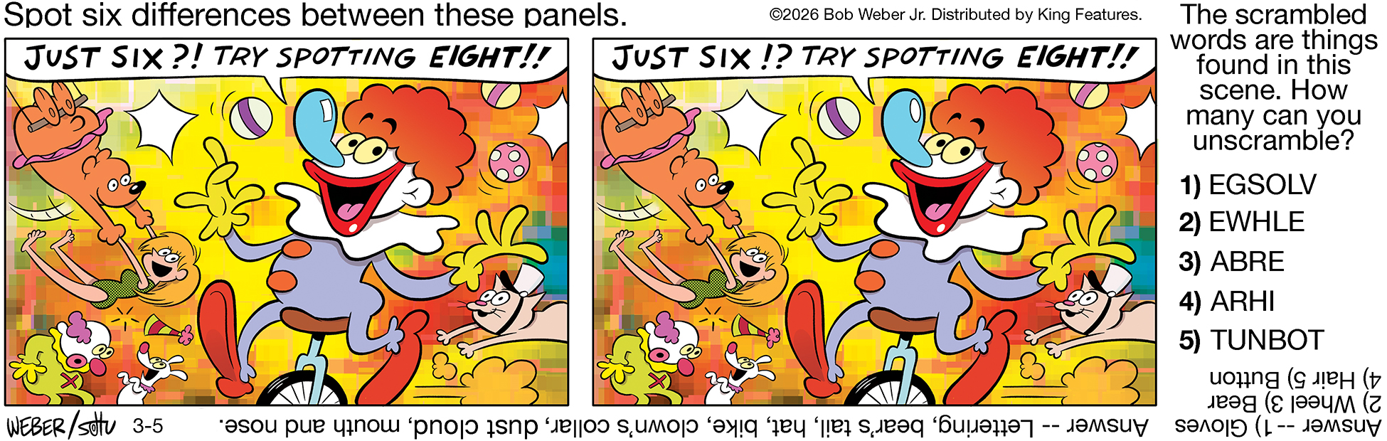 1. Clown’s mouth is moved. I’m wondering about the “hat”. Couldn’t tell the difference on the cat’s hat.
